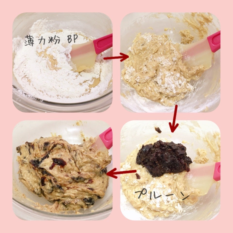 プルーン加えて 全体に行き渡るよう軽く混ぜ合わせる