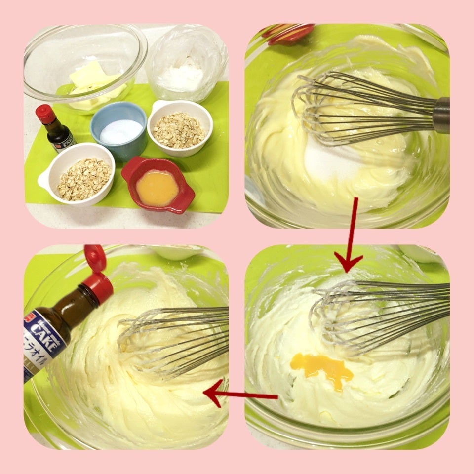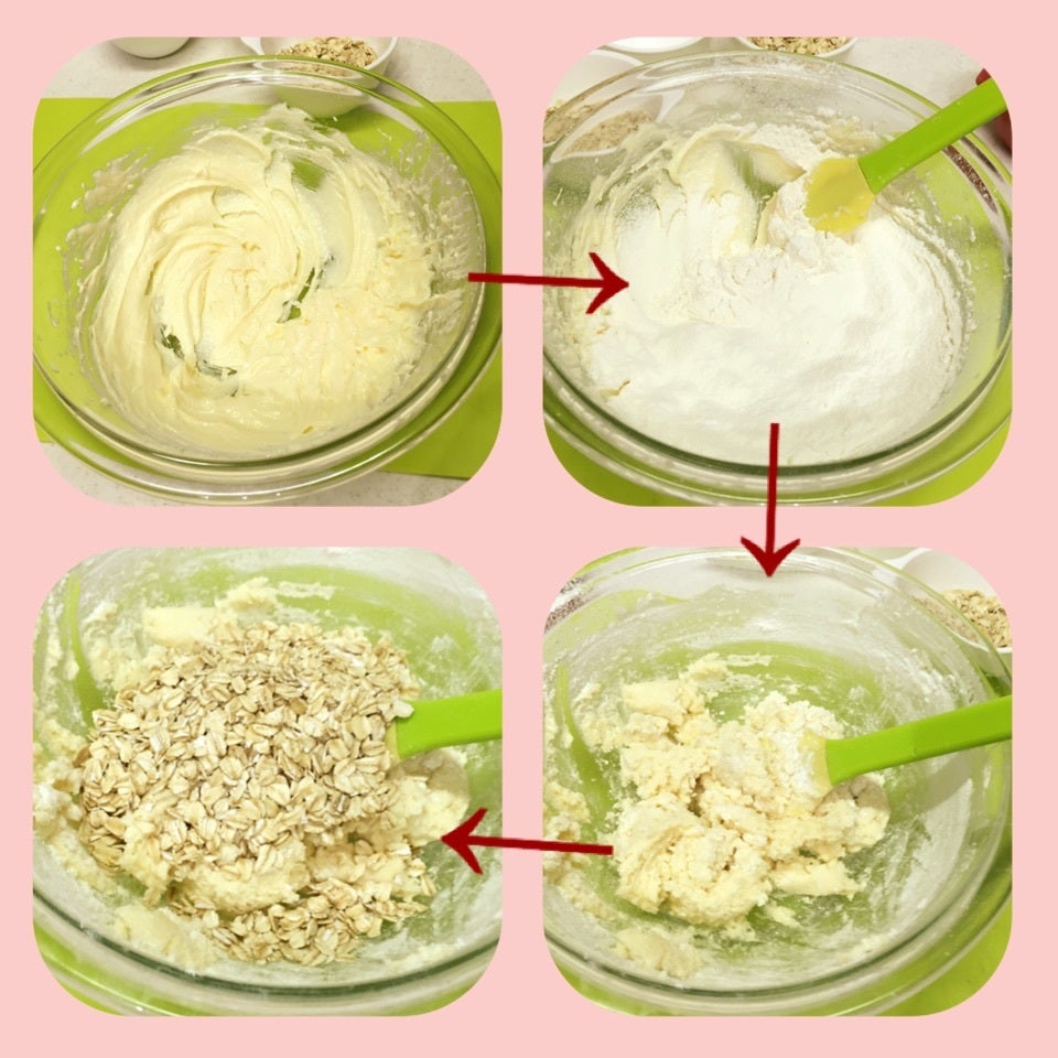→薄力粉(BP)と生地用オートミールをさっくり混ぜる