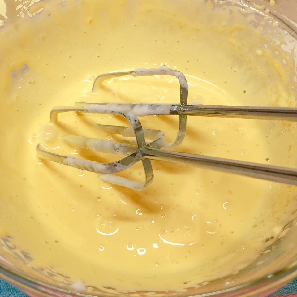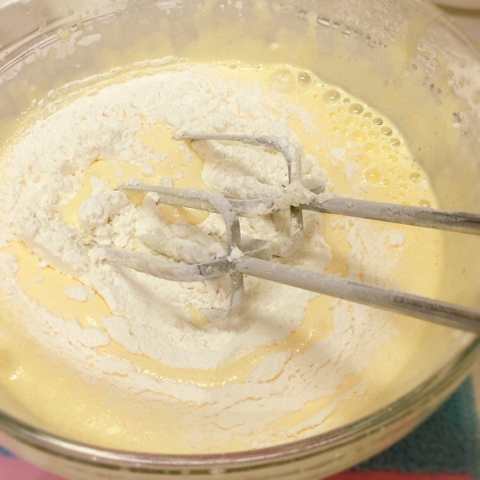⑶ (2)に(1)を1/3入れミキサーで混ぜる