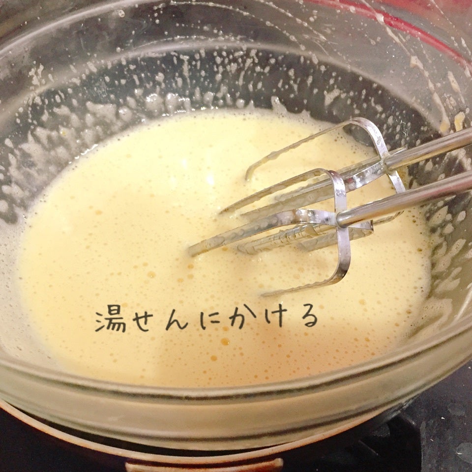 ⑴ ボウルにa.入れ ハンドミキサーで立てる