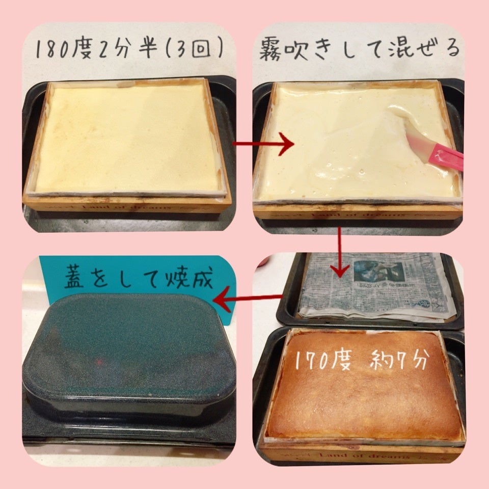 ❸同様に2分半→霧吹き→上生地だけ混ぜる