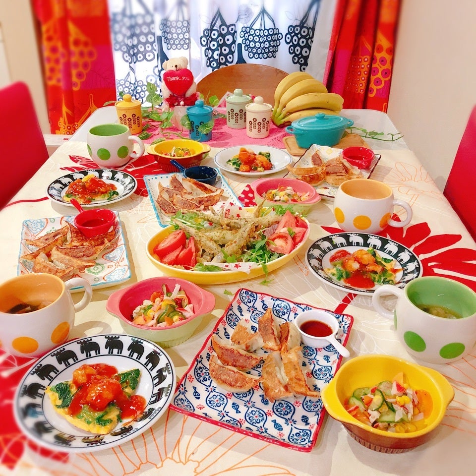 ƪ(˘⌣˘)ʃ ⁉︎ ちょこっとだけ中華風➰ ちょこっと中華に和食を合わせた ➰いつも変わらず ごちゃ混ぜです😅 ❤️焼きギョーザ😋 💜ほうれん草入り エビチリオムレツ 💛中華風酢の物 (鶏ハム きゅうり 人参 コーン かにかま) ❤️シシャモの海苔天ぷら / 水菜 トマト 💜おみそ汁 (豆腐 わかめ 小松菜 油揚げ) 💛常備菜とフルーツ (*^◯^*) 本日も お疲れさまでした💕 詳しい作り方 01 😋ごちそうさまでした➰ ぷらっとさんのお料理をもっと見る 日本を丸ごと元気に!今世紀最大! ビッグプロジェクト『47都道府県応援隊』!! HMH OFFICIAL LINE