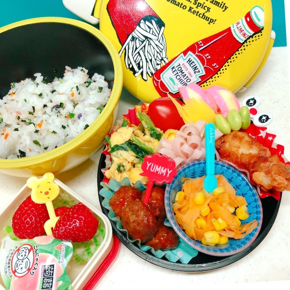 ❤️ J K べんとう ❤️☔️水曜日の J K 弁当🍳💛ポパイエッグ💚ミートボール💜人参とコーンサラダ / ハム💛チーズかまぼこ💚海老クルトン💜プチトマト / 枝豆ピック💛混ぜ込みご飯💚フルーツとゼリー➰🙁雨です☔️🐾 足元に気を付けて‥😉💕 詳しい作り方 01(^○^)いってらっしゃい❣️ ぷらっとさんのお料理をもっと見る 日本を丸ごと元気に!今世紀最大! ビッグプロジェクト『47都道府県応援隊』!! HMH OFFICIAL LINE