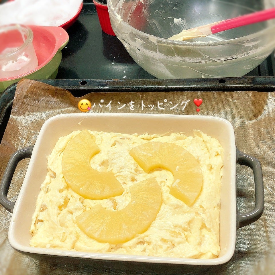 →トッピング用のパインをのせて焼成