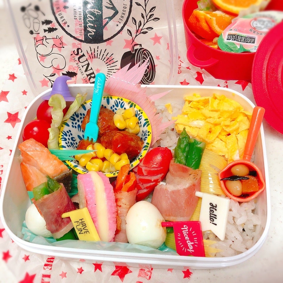 ♡♡おべんとう♡♡.*・♬*おはようございます❣️➰月曜日の J K 弁当➰☘️雑穀ごはん 🍚🥢☘️紅鮭 / 薄焼き玉子 / ひじき大豆☘️串焼き(ウインナー 🐣うずら アスパラ&人参ベーコン巻き)☘️ミートボールと🌽コーン☘️かまぼこ チーズサンド🍅プチトマト☘️蒟蒻ゼリーと🍊フルーツヽ(^◇^*)/ 元気に いってらっしゃい💕 詳しい作り方 01🤗今週も頑張って💕 ぷらっとさんのお料理をもっと見る 日本を丸ごと元気に!今世紀最大! ビッグプロジェクト『47都道府県応援隊』!! HMH OFFICIAL LINE
