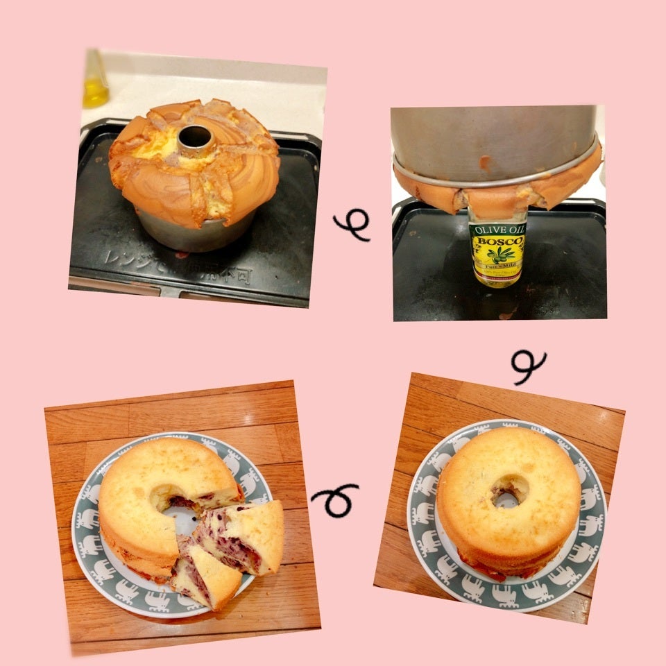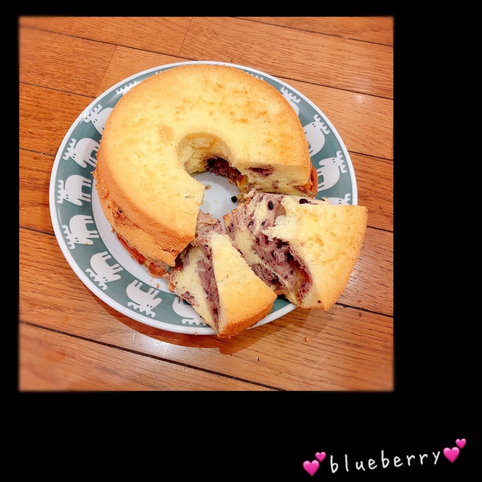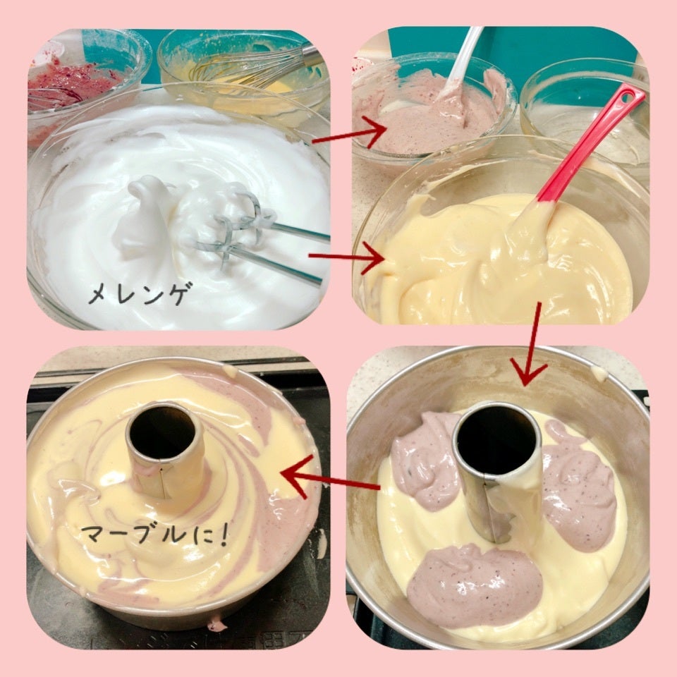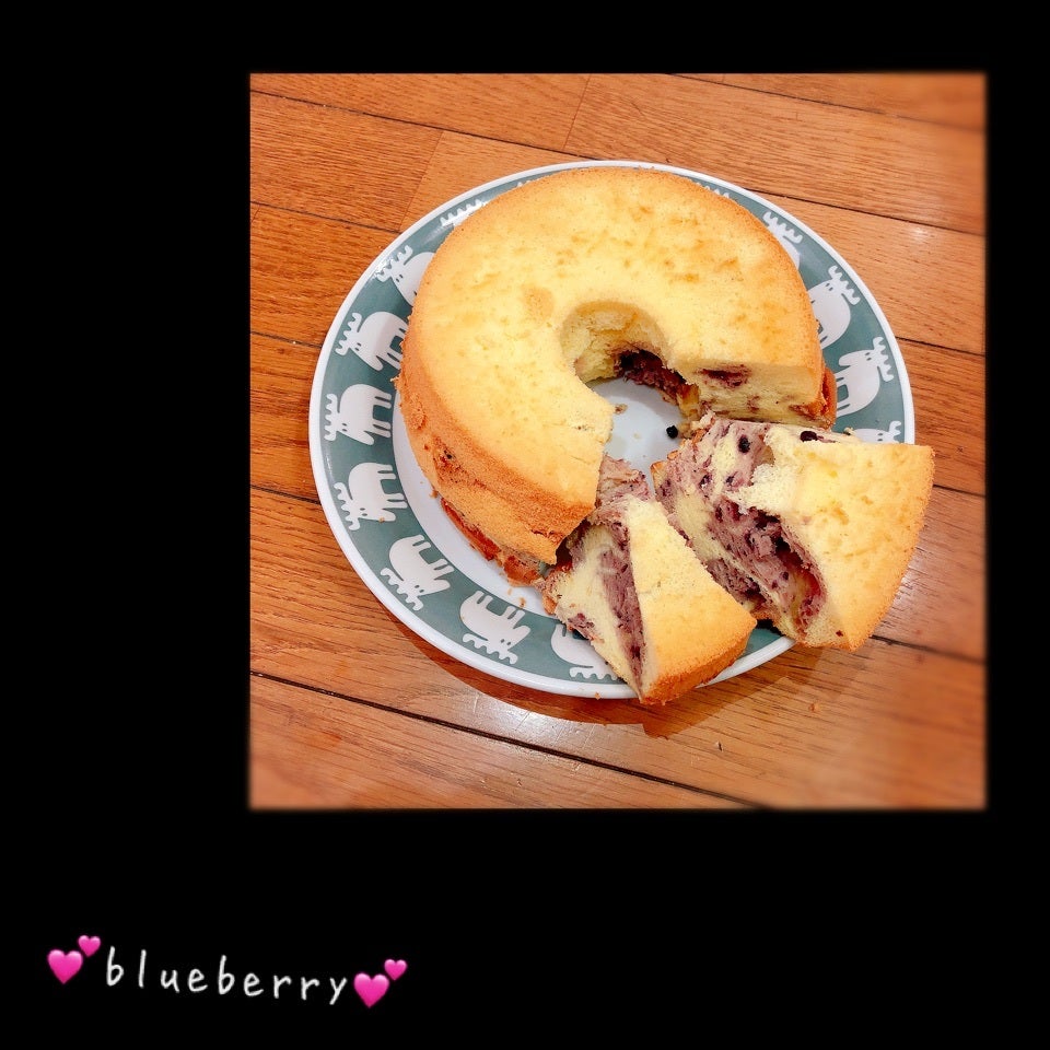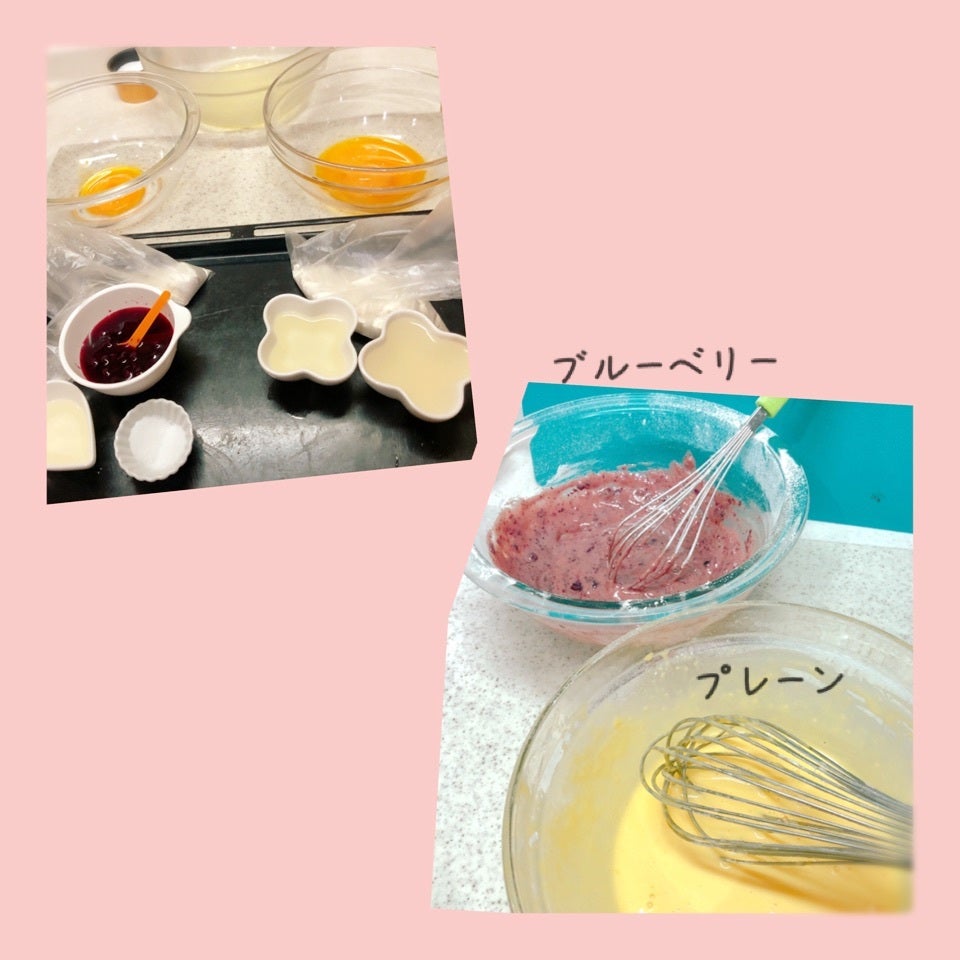 型にプレーン生地1/2を流し 所々にブルーベリー生地2/3を落とす