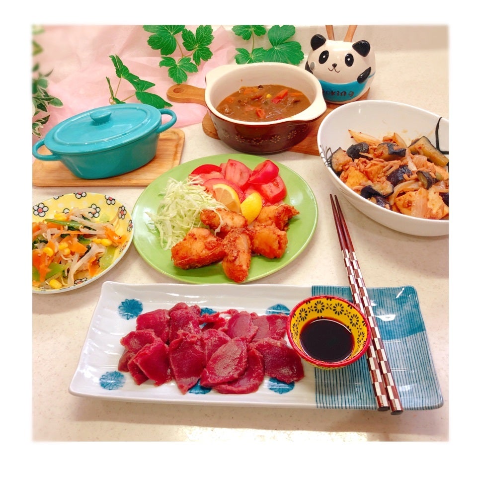 ♪旦那の夕飯 〜メインは馬刺し〜🍜バイトないけど 娘は遊びに行きました🚃 ‥😅 残された(笑) 旦那と私➰「🐴馬刺し」と 「🍛カレー」の夕飯 😋 あとのメニューは 🐟 赤魚の竜田揚げ / キャベツ トマト 🥗 甘酢漬け (小松菜 もやし 人参 コーン) 🍆 茄子と厚揚げの肉みそ炒め🐷 🍺 常備菜 ちょっと品数少ないけど😜 「馬刺し」があるから まぁいいや〜 って事で、本日もお疲れさまでした(^^;; 詳しい作り方 01😋いただきます➰ ぷらっとさんのお料理をもっと見る 日本を丸ごと元気に!今世紀最大! ビッグプロジェクト『47都道府県応援隊』!! HMH OFFICIAL LINE