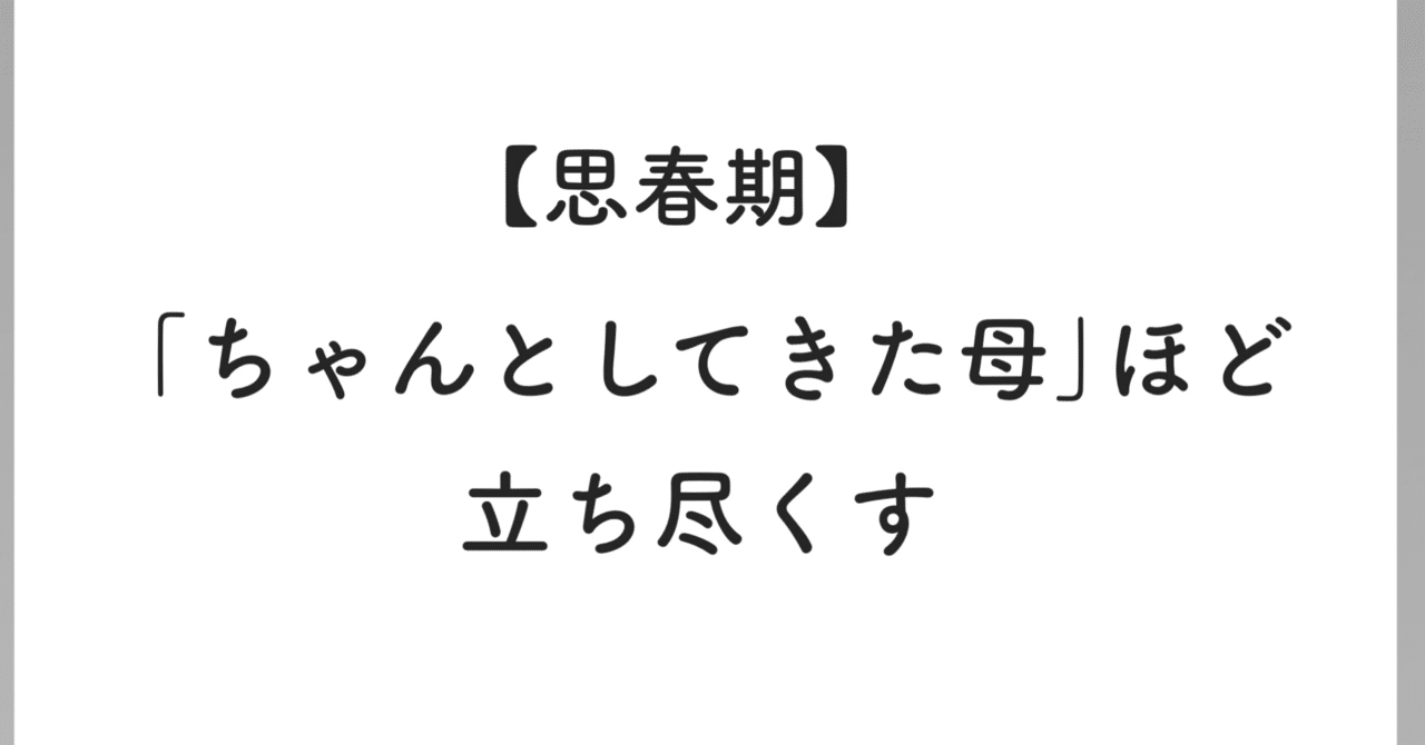 【思春期】「ちゃんとしてきた母」ほど、立ち尽くす── 正しさが通用しなくなるとき、何が起きているのか
