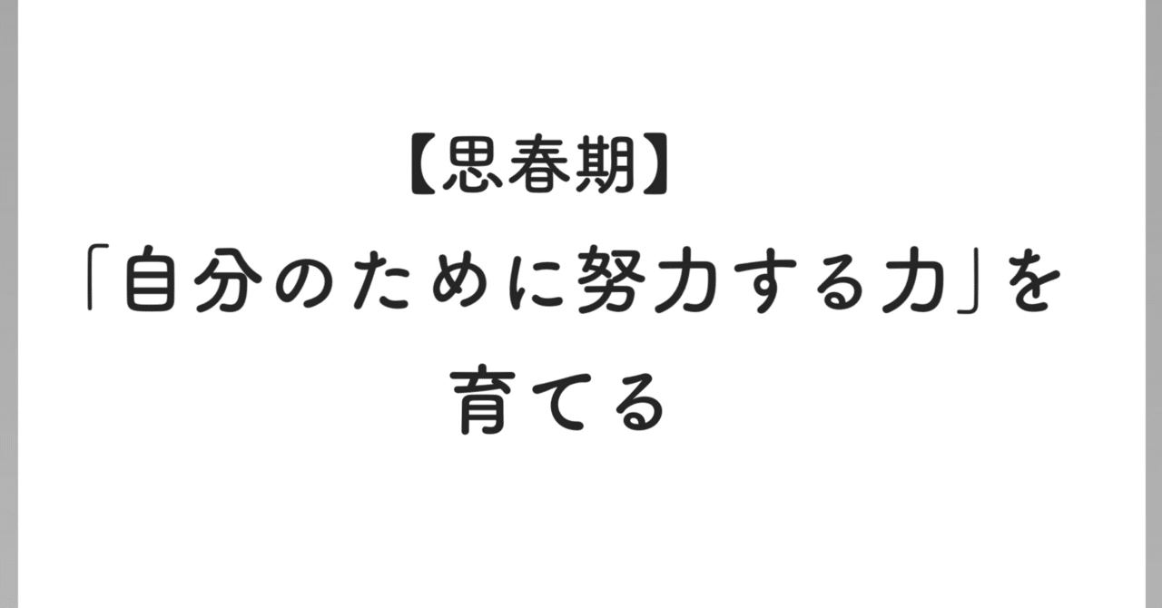 「自分のためにする努力」を思春期に習得できるかどうか。