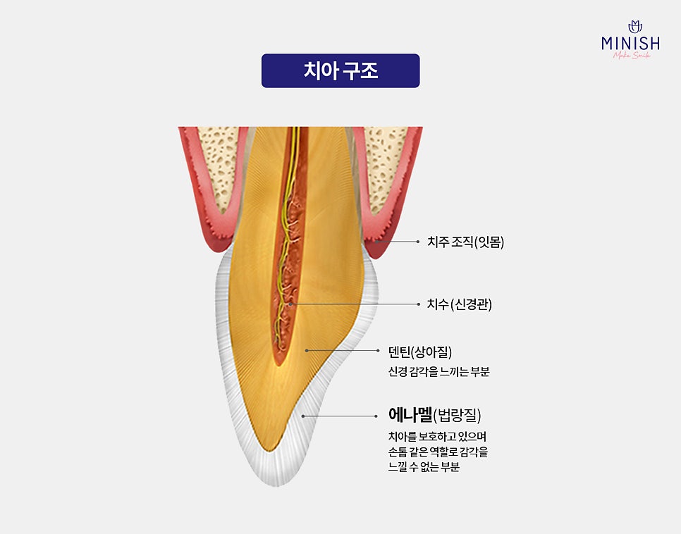健康な歯では、硬いエナメル質が外部刺激から内部の神経を保護しています。しかし本症ではエナメル質が薄い、もしくは損傷しているため、熱いものや冷たいものを口にした際の刺激が象牙質を介して神経に直接伝わり、鋭い痛みを感じることがあります。