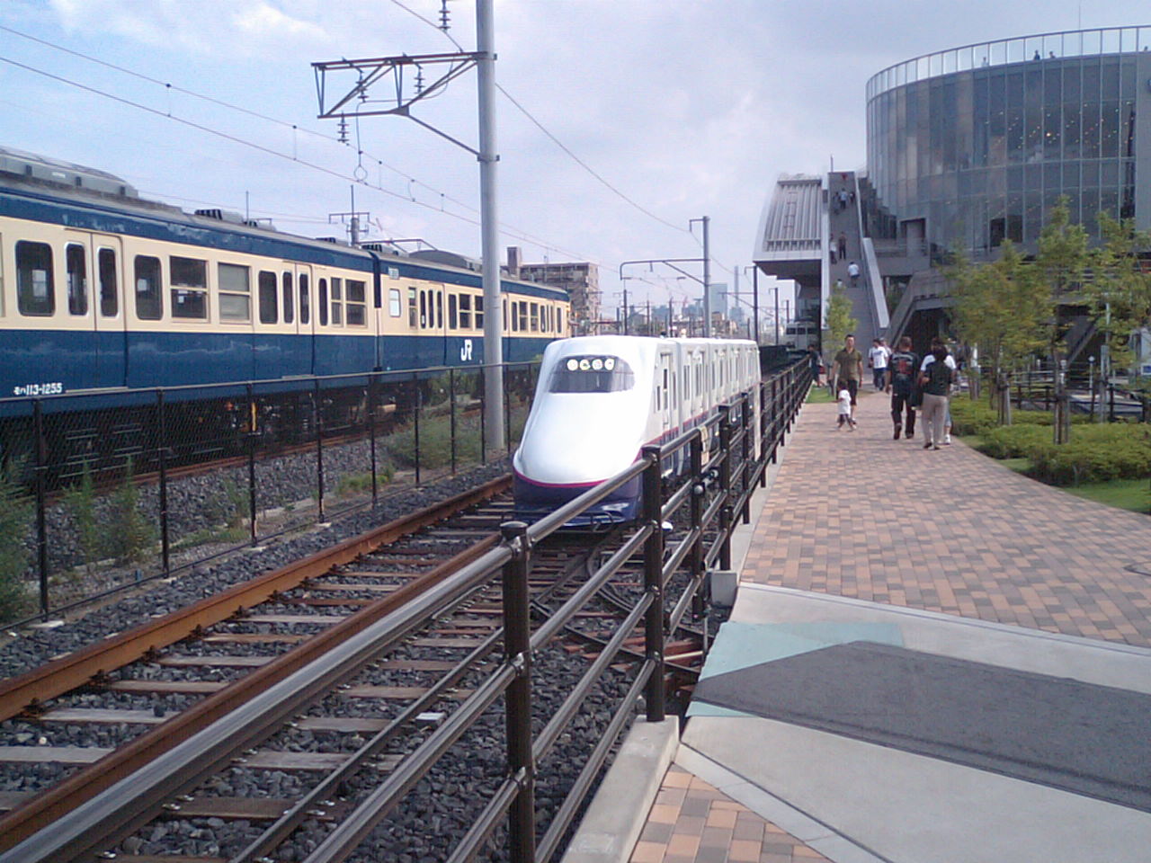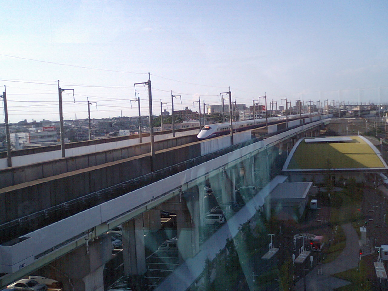展望デッキに上がると、在来線の線路と新幹線の線路に挟まれた立地になって