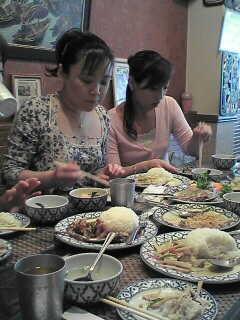 さらに・・今日は仕事の仲間と利花ちゃんとお疲れ&様子見のランチの集い。場所は北千住で、初めて下車した駅でした。食事はみんな大好きなタイ料理。ランチだと言うのにこんなに沢山のお料理!!この後デザートを一人1個半づつ、甘くて苦いタイコーヒーを飲んで、大満足でした。さすが私の仲間たち、良い食べっぷりで気持ちよかった~!!