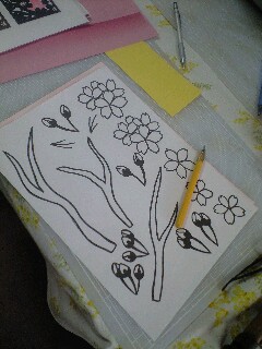 今日の切り絵教室は桜作りです。