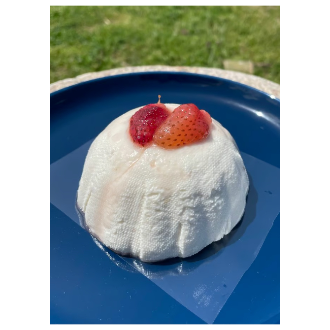 トマトの上に軽く焼いた三良坂フロマージュさんのモッチーズ(Mocheese)を乗せて、
