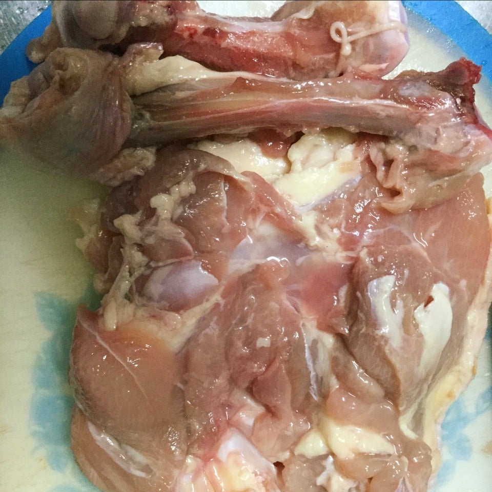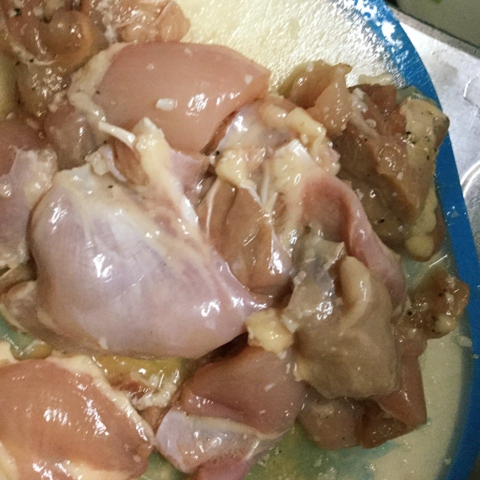 鳥モモを骨とって、水で洗って砂糖で5分着けて