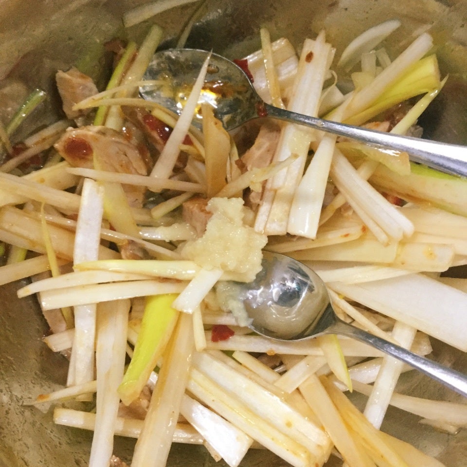 胡麻油たっぷりに豆板醤小さじ一杯