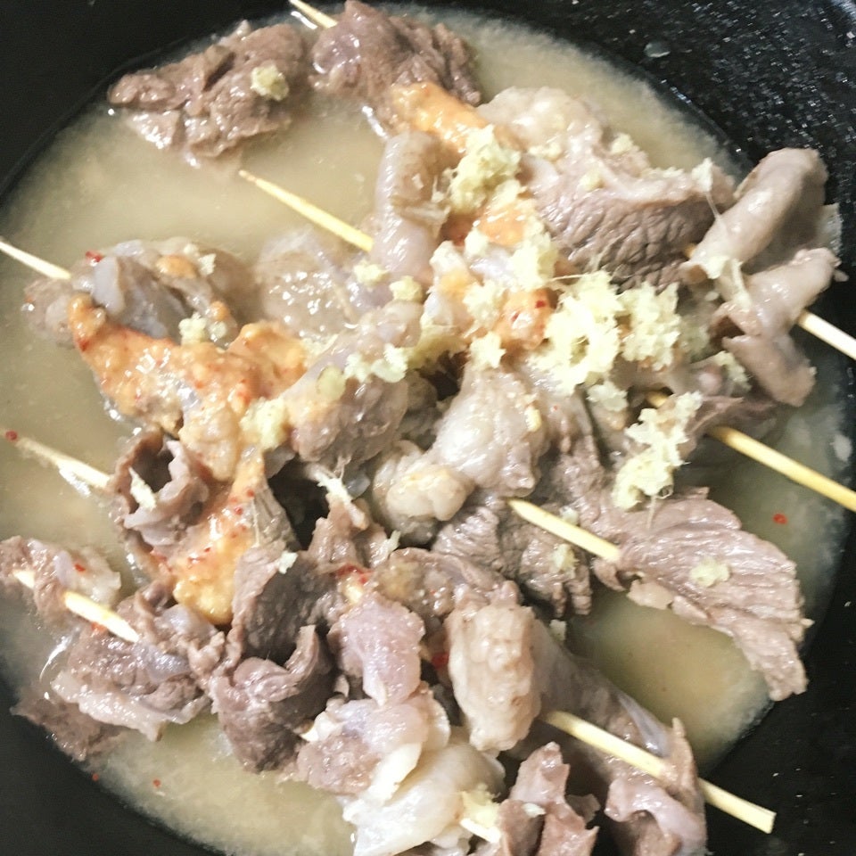 味噌、砂糖、ザラメ唐辛子🌶、生姜擦って