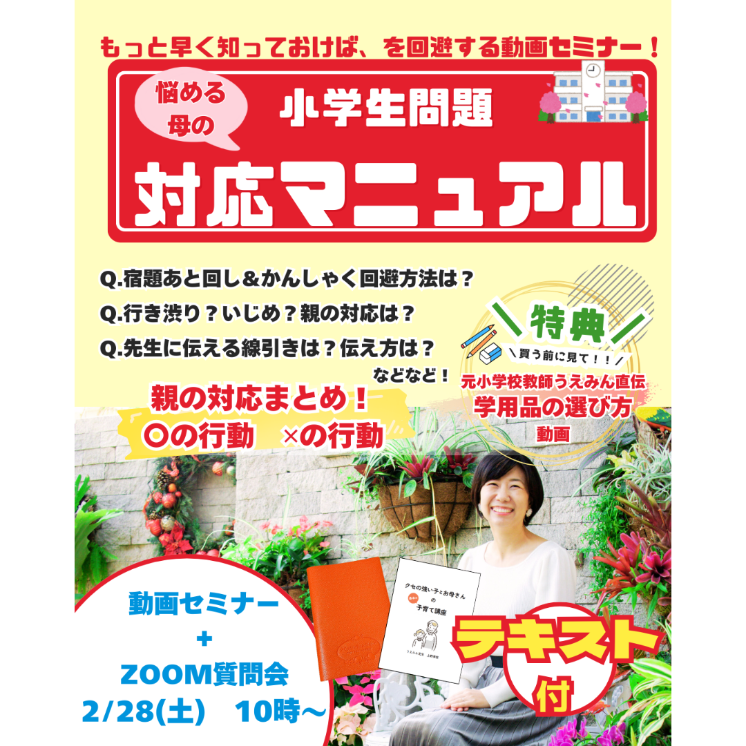 クセの強い子とお母さんの個別オンライン継続相談*宿題/発達/支援級*特別支援学級元小学校教師うえみん先生*上野美佐