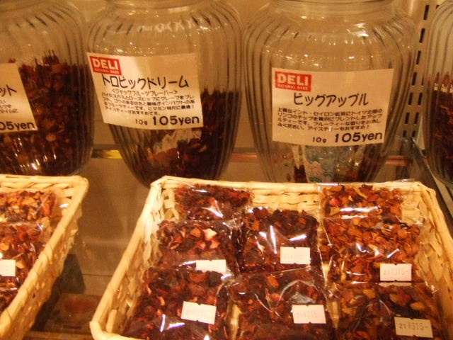 ハーブティーファクトリーにハーブティーの量り売りがありました 買ったのは、ビックアップルとスウィートベリー ●ビックアップル アップルピッツ・ローズヒップ・ハイビスカスフラワーグレープ・ シナモン・香料 ●スウィートベリー パイナップル・グレープ・パパイヤ・チェリーラズベリー・ ハイビスカス・ローズヒップ・アップルなどをブレンドした 大人の女性向きフルーツティー 2種類とも甘酸っぱくて美味しかったです 香りもとっても良いです 2つの違いが私には良く分かりませんが 季節限定につられて、キャラメルティー・バニラクリームティー も買ったけど、思ってたのと違った もっとクリームの味がすると思ってたけど余りしなかった