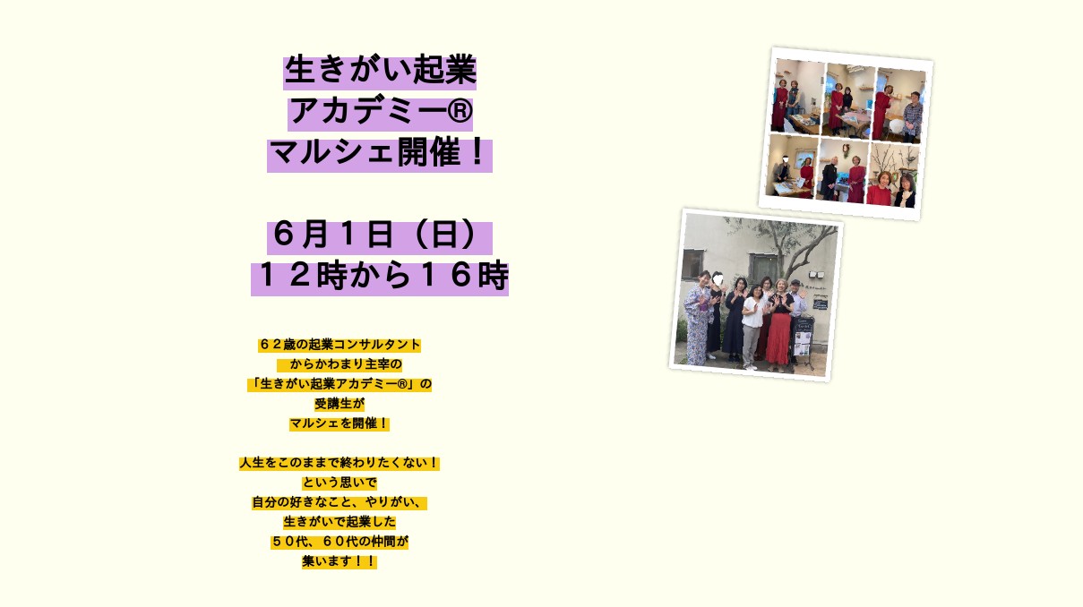 「生きがい起業アカデミー」にてマルシェを開催いたします✨