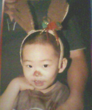 ブライアンの幼稚園のクリスマスパーティーに、ブライアンと旦那とで行ってきた。ハロウィンに引き続き、「クリスマスコスチュームで」とレターにあったので、姉御に借りたトナカイの角に茶色の服を着せ、口紅で鼻を赤くして、トナカイに仕立てた。
