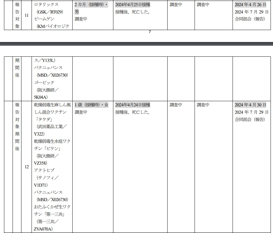 乳幼児混合接種 7名死亡★ ★乳幼児(それ以外は高齢者)