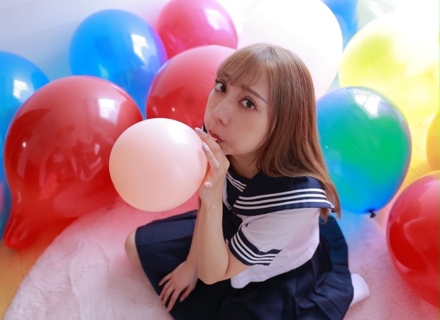 フローラちゃんが風船を膨らましたり体を押し当てて風船を割ったりします!!綺麗な顔立ちなフローラちゃんを楽しんで下さい!!
