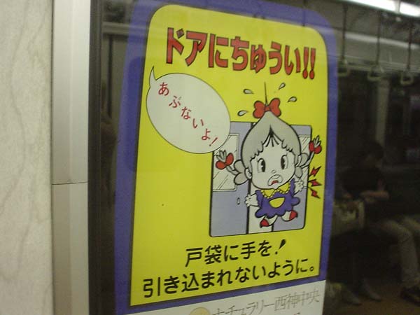 地下鉄に乗る。神戸市営地下鉄の電車の扉全てに、指をはさまれないように注意を促すステッカーが貼ってある。いつもこのキャラクターに見入ってしまうのだ。