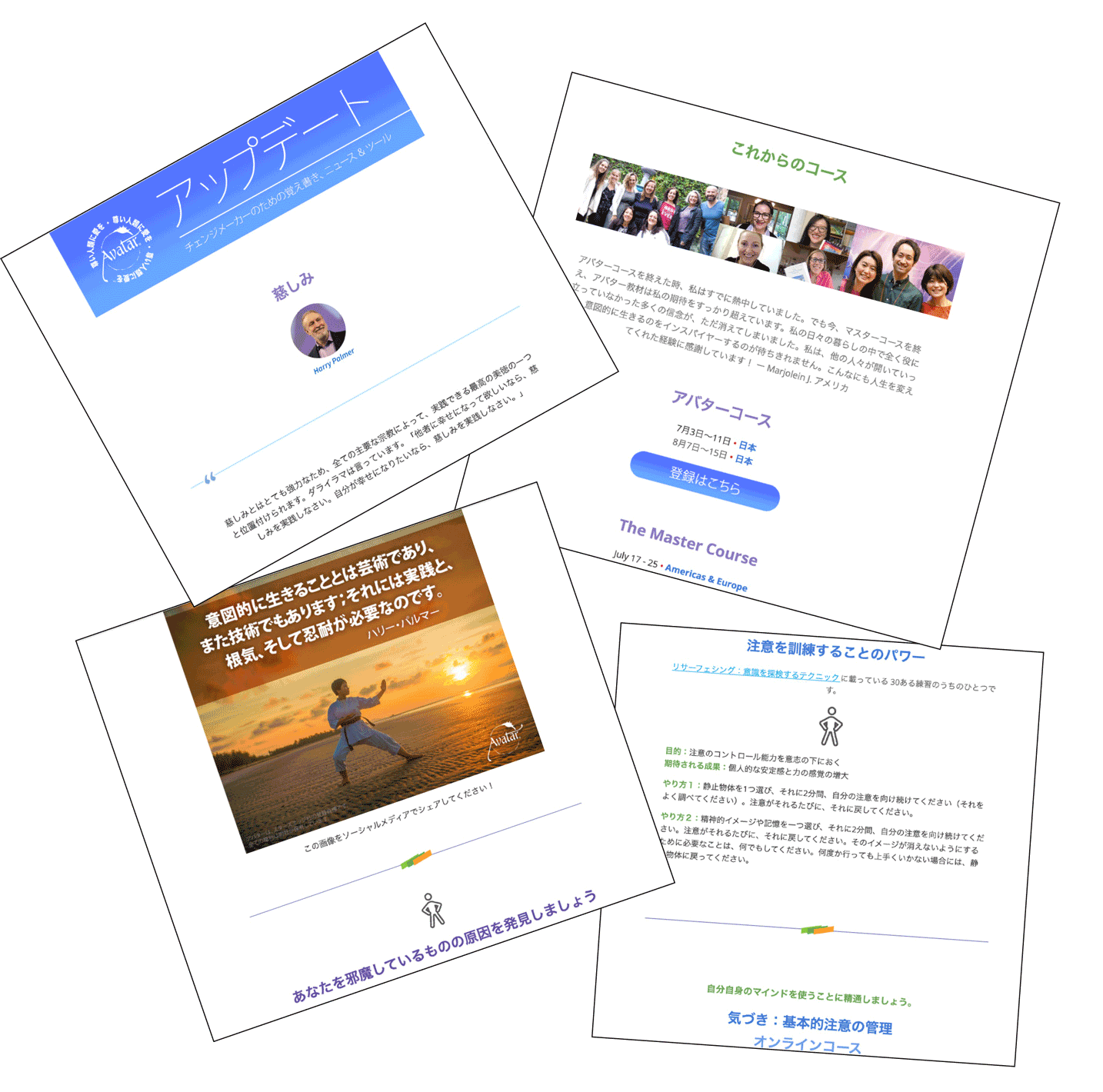 公式ニュースレター『アップデート』 | アバターEPC ジャパンチェンジメーカーのための覚書・ニュース&ツール。アバター教材の著者ハリー・パルマーによるインスピレーションに満ちた文章が毎週一回届く無料のニュースレターです。avatarj.com