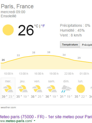 そして午後の予想最高気温はGoogle.fr表示によれば、39度。