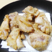 もう一度揚げ油を熱し、4のもも肉をカラッと揚げて出来上がりです。