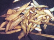 2分ほど揚げたら、いったん取り出し、2分半おいておきます。