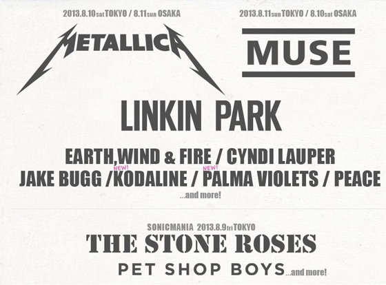 METALLICAとMUSEをヘッドライナーに迎え、8/10、11の2デイズ、東京、大阪の2都市にて同時開催となる14回目の“SUMMER SONIC 2013”の追加アーティストが発表となった!