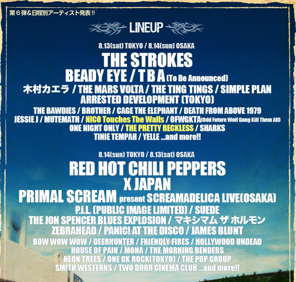 今回、いまや日本を代表するギターロックバンドに成長したNICO Touches The Walls、新世代ガールズ・アイコンTaylor Momsen率いるTHE PRETTY RECKLESSの2組も追加決定。