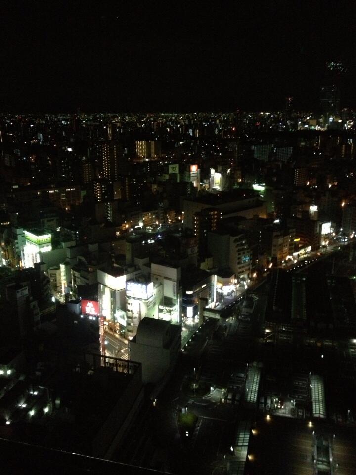 Osaka at night. Pulled my chair up to the window to look out over the city as I play bass. Beautiful.