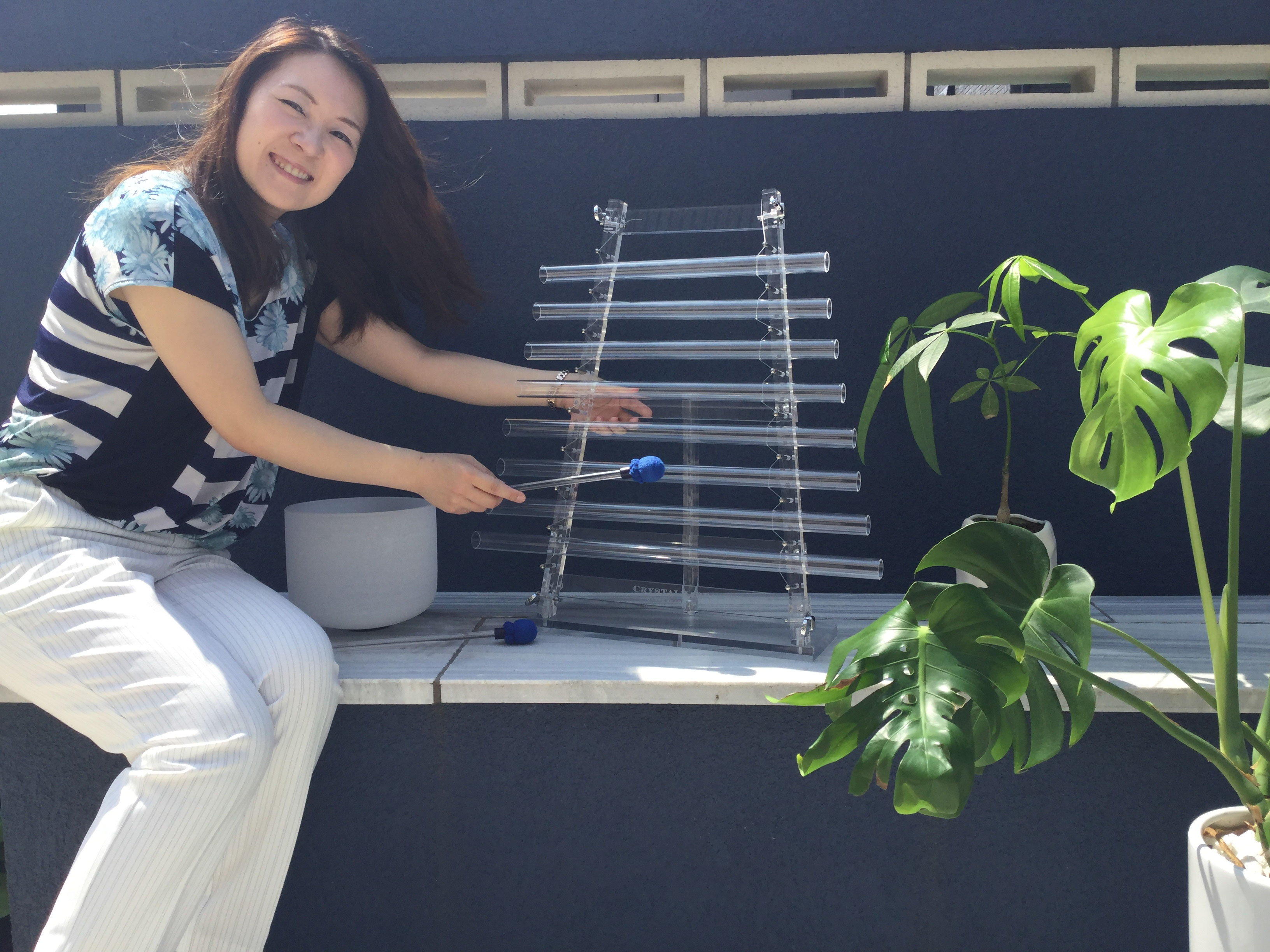 購入後、楽器が到着しました。その頃の私は、つわりがとてもひどい時期で、自宅からサロンへ移動するにも10分に1回休憩しながら車の運転をしていました。もう、到着したらげっそりです・・。つわりの期間は、どうしてあんなにも辛いのか、女性の身体は不思議ですね。当時、心も身体も不安定だった私自身にまずはクォーツフォンを使ってセラピーをしました。