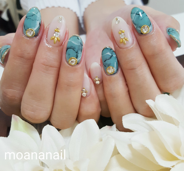 ターコイズブルーで大理石ネイルです♡
