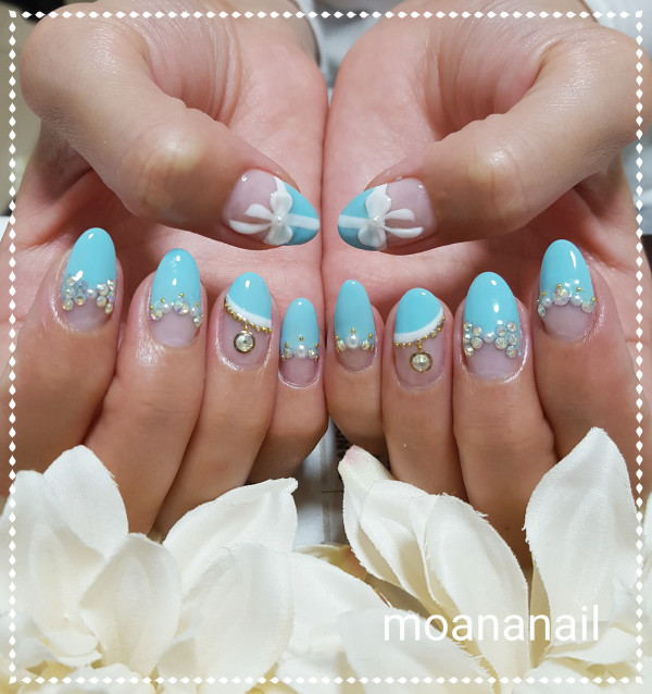最近人気のティファニーブルーを使ったジェルネイルです♥