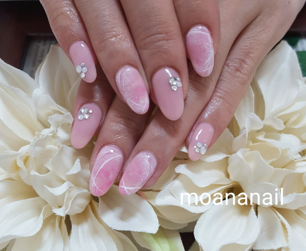 とってもきれいなピンクで、大人マーブルのジェルネイルです♥