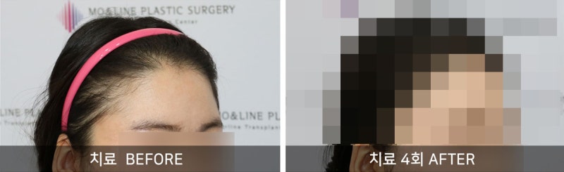 > 20代女性(M字・前髪の分け目脱毛): 頭皮スケーリング/頭皮栄養管理 + 成長因子サイトカインMTS治療 + ヘアセル磁場治療 + LED 5回