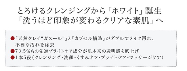「ザ クレンジングバーム ホワイト」は、新配合「天然溶岩クレイ」が特長。