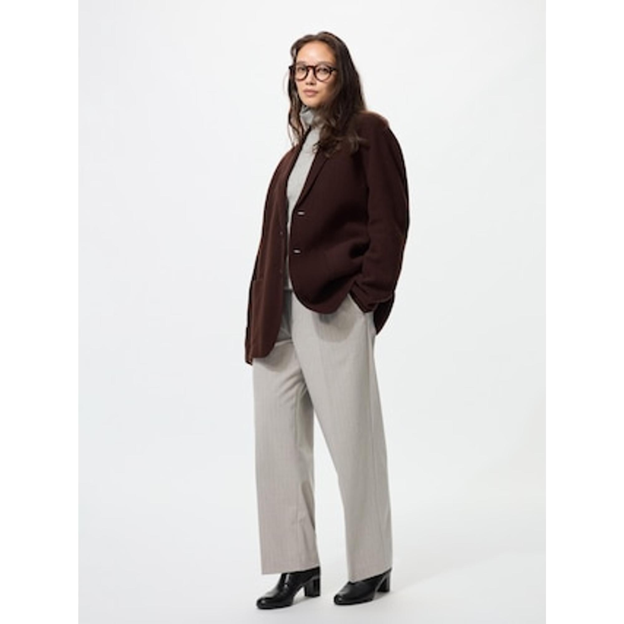 ピンクのニットとネイビーのストライプのタックパンツに、アローズのウールコートで行きました。