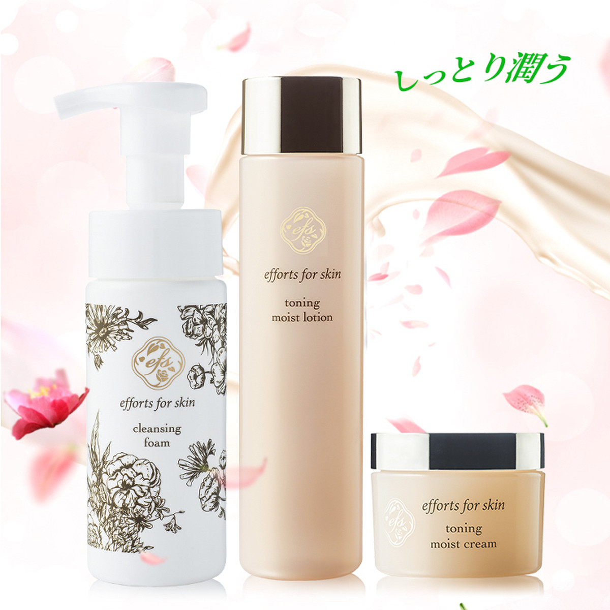 イーエフエススキンケアは、上品な甘さを感じる女性らしいスキンケアラインだと思います。