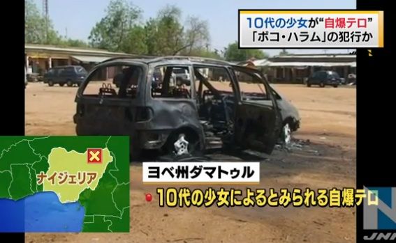 10代少女が【自爆テロ】ナイジェリアで16人死亡★ボコ・ハラム関与か ナイジェリア北東部・ ヨベ州の州都で15日 10代の少女によると みられる自爆テロがあり AP通信によりますと 少なくとも16人が死亡 30人が負傷しました 詳細はこちら ↓ クリック
