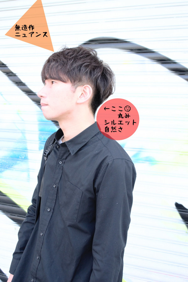 今回のスタイルの場合では、後頭部・首元の刈り上げ部分の丸みです