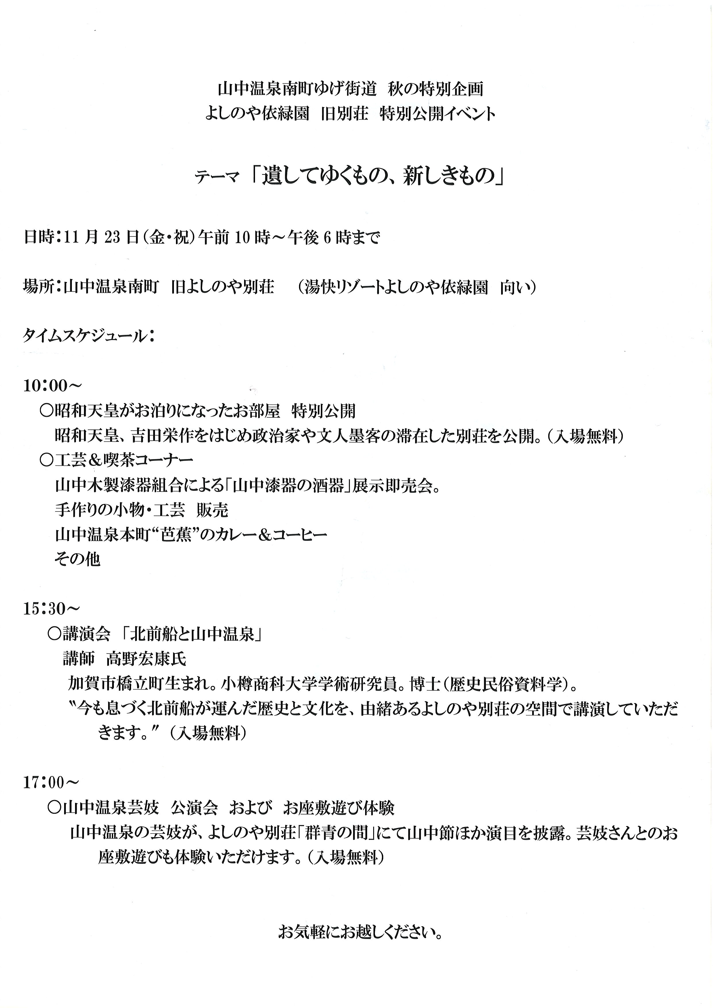 旧よしのや別荘での『遺してゆくもの、新しきもの』で、