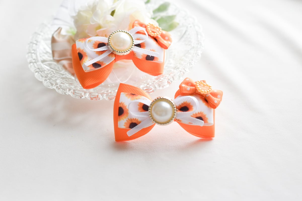 このリボンに合わせてオレンジ色の服を探しましたが…