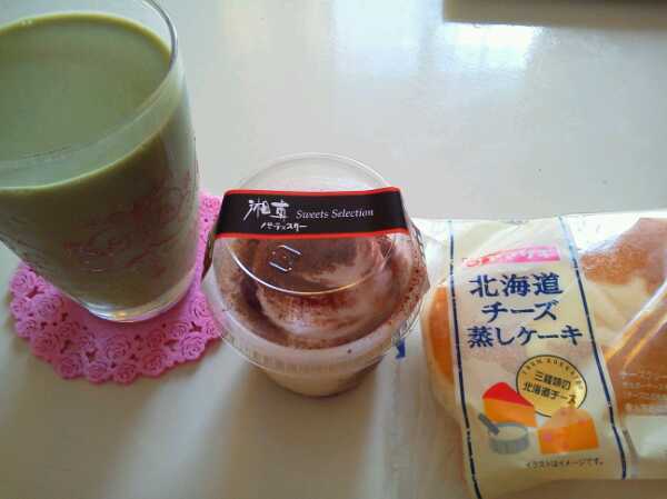 青汁(豆乳)、ティラミス、大好物のチーズ蒸しケーキ