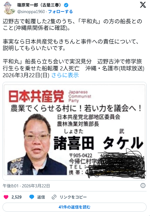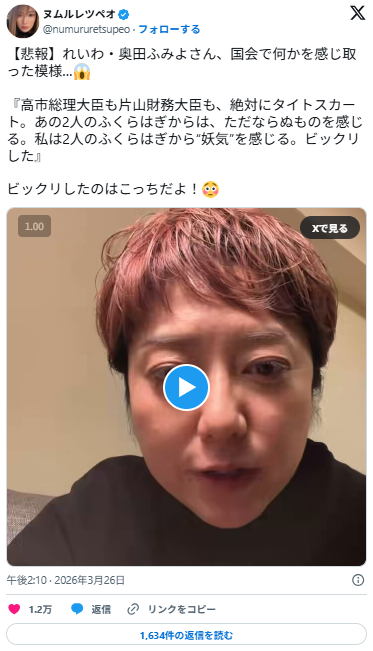 — 🇯🇵🍊🍊アフロ波平🍊🍊🇯🇵 (@afuro_ray_2025) March 26, 2026