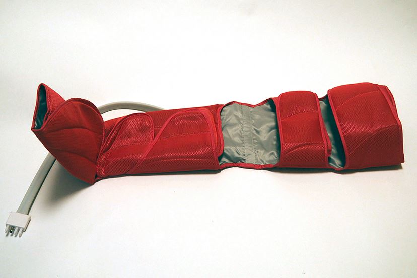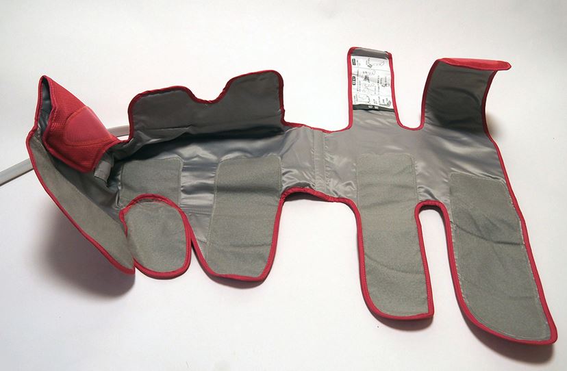 5本のマジックテープがある脚用アタッチメント。このアタッチメント脚に巻いてマッサージ。足先部分は完全には開きません